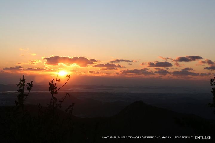 이제 해가 거의 다 넘어갔습니다. 날이 더욱 깨끗했더라면 수평선으로 해가 지는 것을 볼 수도 있었겠지만.. 서해안의 구름 뒤로 넘어가는 해에게 작별을 고하며 관모봉으로 이동합니다. 태을봉에서 관모봉까지는 600미터 정도 거리이며 능선을 타고 움직이면 10분~15분이면 도착합니다.